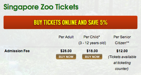 若確定遊園日期可預先上網訂票節省5%,預約網頁:eticketing.zoo.com.sg:81/Booking.aspx